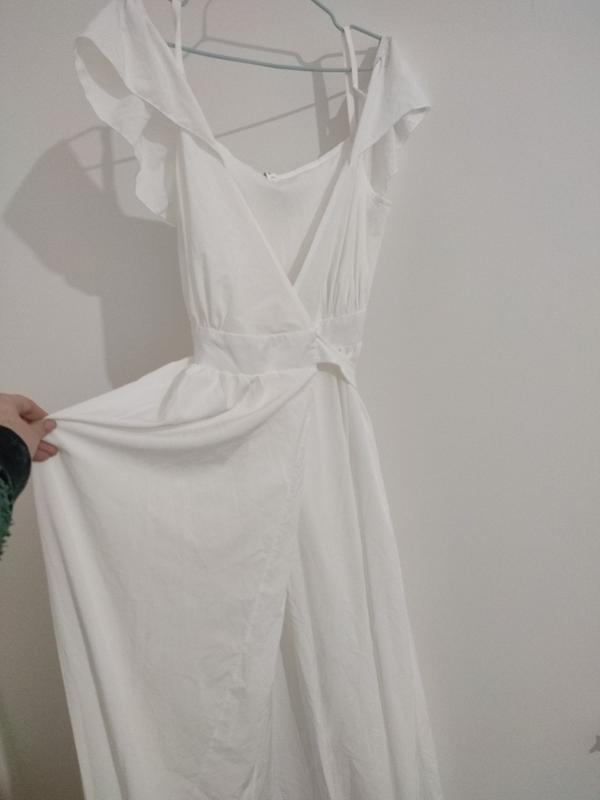 Платье долгое на запах, цвет - айвори (ледь молочный), с рюшами.