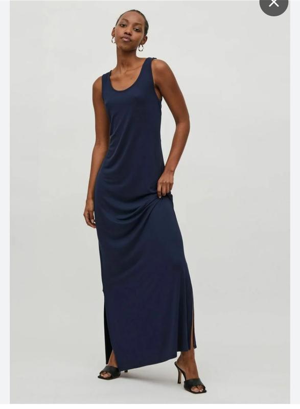 Стильное платье,темно синего цвета, длинное, имеет по бокам разрезы рр-16 длина 137 см ширина 50 см цена 180 грн