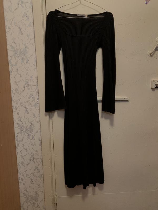Элегантное черное платье с длинными рукавами и шнуровкой на спине, что добавляет образу утонченности и загадочности.Подходит для S-M