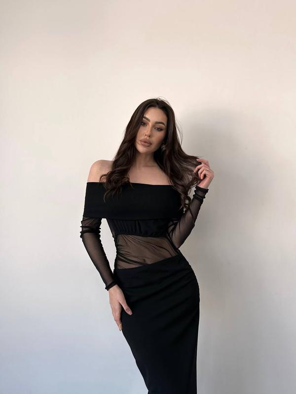 Сукня Мод: 1455-0245 ▪️Ткань: крепдайвинг+ сетка ▪️Размер: 42-44, 44-46 ▪️Цвет: черный
