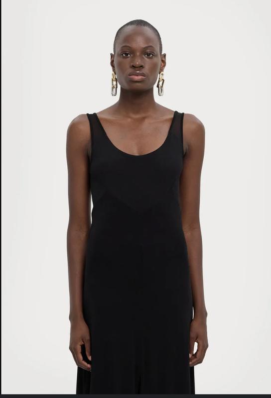 Длинное черное приталенное вискозное платье MAX & Co с разрезами по бокам. Розмар L. Новая, сток, ез бумажной этикетки. Шикарного качества и силуэта вещь. Грловина и проймы обработаны шелком. Состав 95% вискозы, 5% эластана. Длина 150 см НОГ 45+см НОТ 42+см НОС 50+см Цена 1800 грн