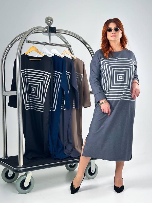 💝💝💝💝новинка💝💝💝💝 💙💛производитель Украина 💛💙 Модель # 505 Платье туника с три де накатом! Свет серого цвета! Ткань тиар Катон! Очень мягкая и приятная к телу ткань! Тянеця+- 5 см Р 48-52,54-58,60-62 Цена 1300 гр Цвета Черный, серый, темно синий, Мокко, графит Замеры 48-52 О/г 122,о/б 122,рукав 46, длин 127 см 54-58 О/г 128, о/б 128, рукав 47, длин 128, 60-62 О/г 136,о/б 136, рукав 48, длиж 129 см Ткань тянетеля +- от 5 до 7 см