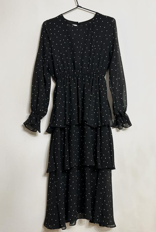 Сукня неймовірно красива 🥰 Розмір S,довжина 115 см., ПОП 35 см. ПОГ 48 см. ПОТ 30 см.,резинка,талія завищена Рукав 61 см. на резинці заді застібка на ґудзик