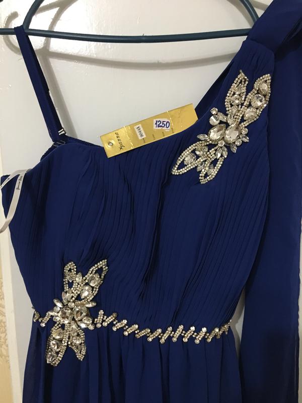 Новое нарядное платье со шлейфом на плече.красивого синего цвета.Украшенное камнями.Реальному покупателю сделаю скидку!
