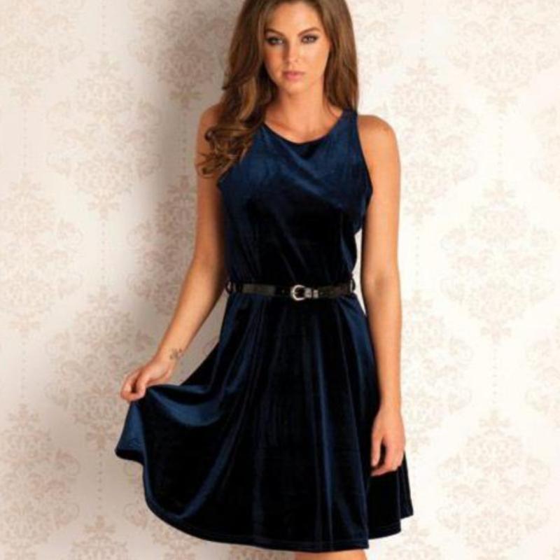 платье велюровое синее взади с v образным вырезом