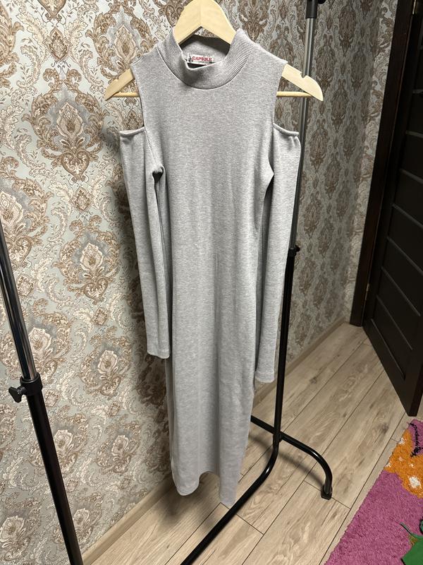 Сукня футляр в рубчик з розрізом плечіки відкриті рр s -M дуже добре тягнеться в ідеальному стані.