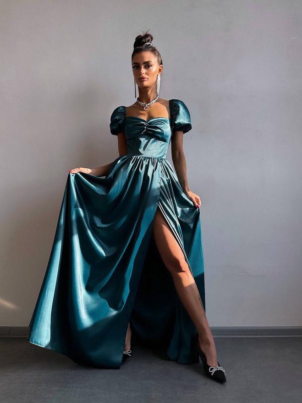 Изысканное атласное платье макси с разрезом, длинное атласное платье с драпировкой, платье...