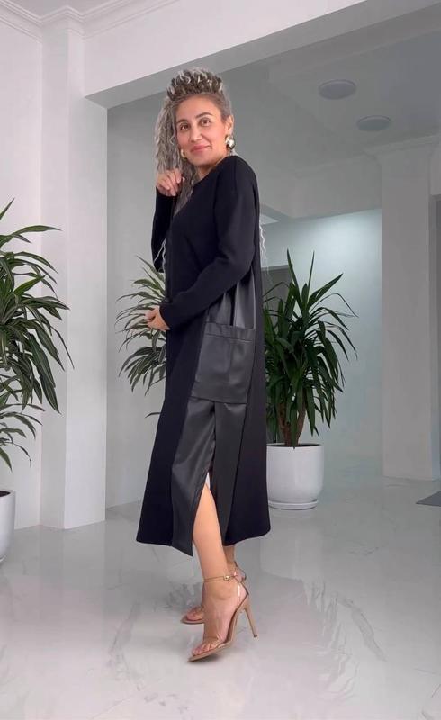 0310 Сукня Ткань: итальянский трикотаж + эко кожа Размеры: 48-50, 52-54, 56-58 Цвет: черный, красный