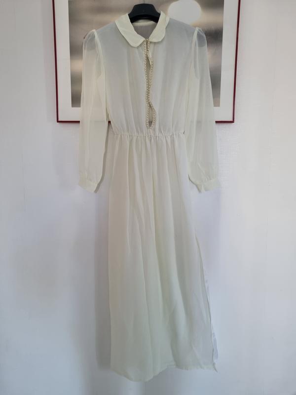 Новое платье длинное, декольте открыто, украшено жемчужинами.Есть подклад, по талии резинка. Кроер с лимонным оттенком. Длина 143, нот30, тянется до 45, пост по подкладке до 60см. Добавить пасок, будет нежно и нарядно