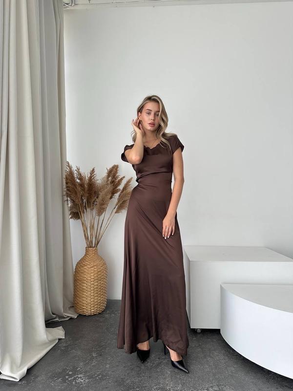ФОТО РЕАЛ💖 Сукня ▪️Мод: 0225 ▪️Тканина: шовк ▪️Размеры: 42-44, 44-46 ▪️Цвета: черный, молочный, шоколад Платье идет с завязками на спине.