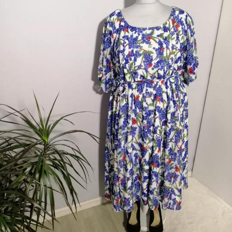 🌾Новое шифоновое платье с кармашками сзади на молнии Грудь до 150 Пояс резинка 130-140 Бедра в спокойном состоянии 180 Юбка " солнце клеш" Бедра войдут любого размера Рукав 33 Длина 130 🔖