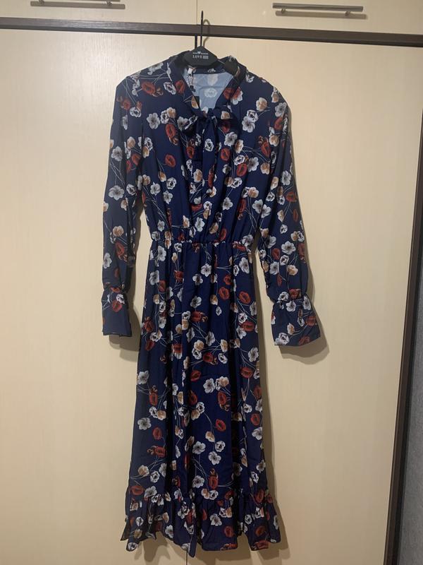 Цвет темно синий в маках, длина 122 см, рукав 63 см, ПОГ 47 см, ПОТ 27-46 см( на резинке)