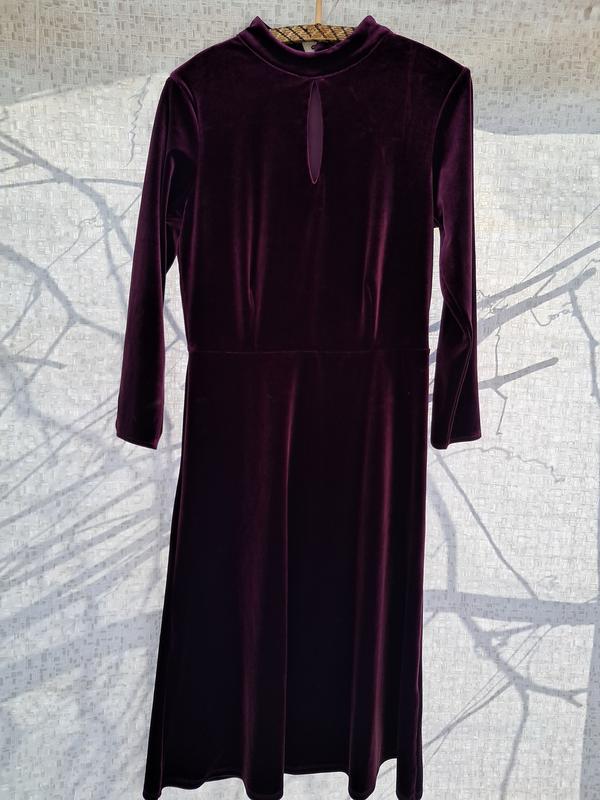 Платье велюровое, насыщенного фиолетового цвета. Состояние новой. тягнеться, незначно. тканина не тонка! На декольте есть вырез (указано на фото), рукав 3/4 замеры в нерастянутом виде: длина по спинке 112 см, длина рукава 50 см от плечевого шва. Ширина от плеча до плеча 40 см, Ширина от подмышки до подмышки 44 см, ПОГ 43 СМ, ПОТ 37 СМ, юбка напівсонце,Ширина по низу 78 см.