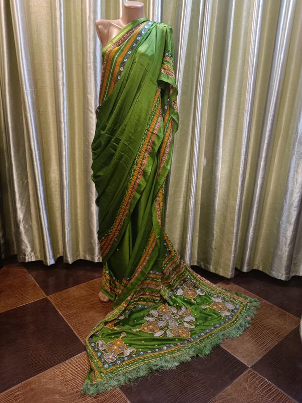 Красивое , яркое индийское сари с шикарной вышивкой . Вышивка расшита бусинками и стразами. Ткань мягко драпируется