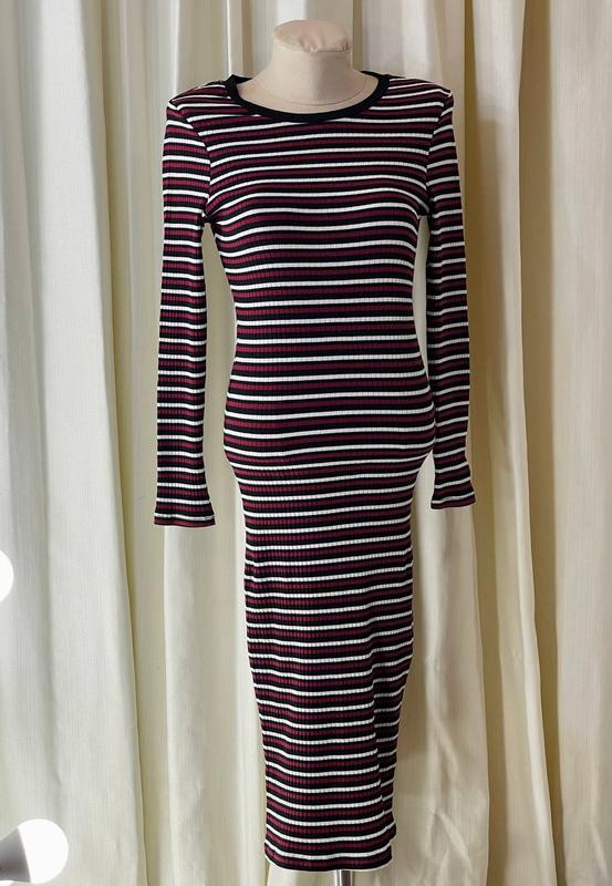 Платье-резинка трикотажная в полоску (бордо-черная-белая) PRIMARK🛍️❤️🔥 Размер - UK 8-10/ EUR 36-38/USA 4-6/ S-M / 44-46. Состав : 53% хлопок, 43% полиэстер, 4% эластан. Производитель Бангладеш. Платье облегающего кроя из трикотажной резинки средней плотности. Круглый вырез горловины и длинный рукав. Хорошая эластичность. Дополнительные замеры: полная длина 110 см, ширина плечей 34-38 см, длина рукава 58 см, полуобхват груди 37 см (полный охват 74 см) и тянется до 100 см, полу охват талии 32 см (полный обхват 64 см) и тянется до 90 см, полуобхват бедер 35 см (полный обхват 70 см) и тянется до 110 см.