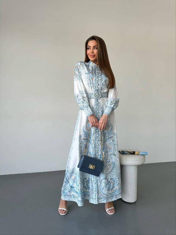 Шикарна сукня максі в біло-блакитному кольорі з неймовірним принтом 💙 Елегантна сукня стане лаконічним вбранням для жіночного образу 🔥 ✅ Модель: 2520 ✅ Розмір: S, M, L ✅ Тканина: шифон ✅ Довжина: 140 см 💰 Ціна: 2100 грн Мод. 2520