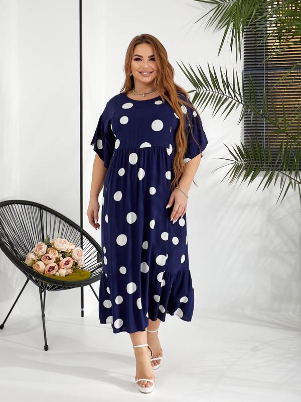 Сукня Арт.1233 Размеры: 52-54; 56-58; 60-62; 64-66 Маркировка: 2xl 3xl 4xl 5xl Тканина: штапель Цвет: темно-синий, черный Цена:1200грн Отличное платье свободного кроя с удобными карманами, станет идеальным выбором для любого случая. Замеры платья Арт.1233 2хl- Ог.110, Ос.138, Дл.128 3хl- Ог.116, Ос.146, Дл.128 4хl- Ог.122, Ос.155, Дл.129 5хl- Ог.130, Ос.162, Дл.130 Дов.рукава от горловины: 37-40см Тканина не тягнеться