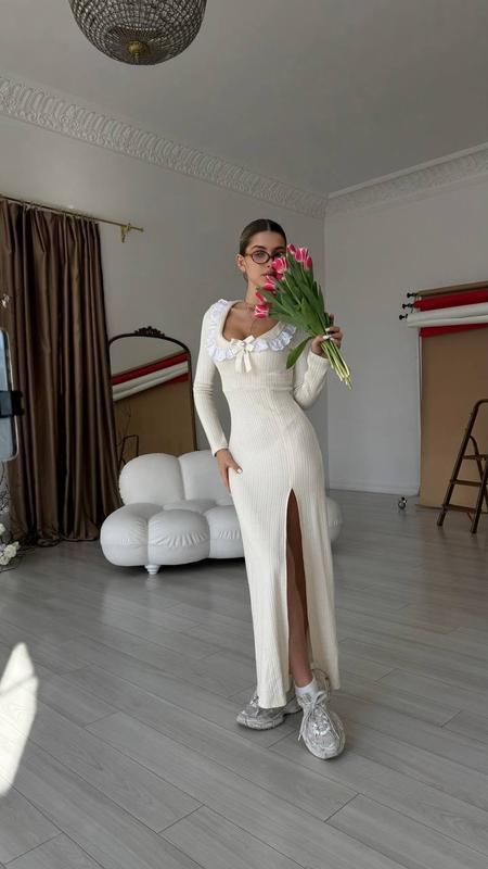 Нежное девичье платье из рельефного трикотажа в длине макси с воротничком, отделанным кружевом🌷 Выглядит очень мило и по девичьему 🌷 ▫️Ткань: нежный рельефный трикотаж ▫️Размер: с, м Цена 2200грн.