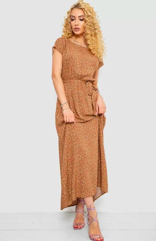 Платье с принтом, цвет коричневый, 214r0228-9