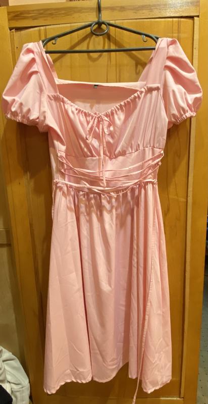 Продам изящное платье нежно розового цвета с разрезом.. Великолепие 300см Без замочка Длина изделия 105см Длина разреза 43см Рукава 25см Тканина софт. Декольте украшен кулиской, шнуровка-корсет на талии. Параметры: Объем: грудь - 96см Талия - 72см Бедра 100см