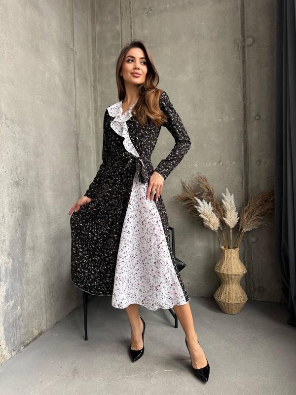 Платье с ложным запахом арт. rud. 760 Тканина: софт Размеры: 42-44, 46-48 Цвет: черно - белый