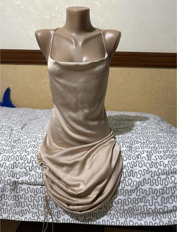 Полуобъем под грудью -45 см Пот -41 см, по бедрам -46 см, длина регулируется завязками по бокам, 69 см длина по спине и 86 см спереди ( это если полностью распустить шнуровку) Очень приятная к телу Цвет светлый беж,Шампань
