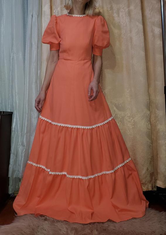 Винтажное романтическое платье р. ХС, небольшая С. На фото рост 160см 83-64-83. Платье индивидуальный пошив, но винтаж. Сзади на змейке, талия чуть завышена, пояс вшит по бокам. Состояние как для винтажа отличное. Качество классное. Замеры по запросу. Возврат не предусмотрен. Цена без торга, плачу Шафе 15 %