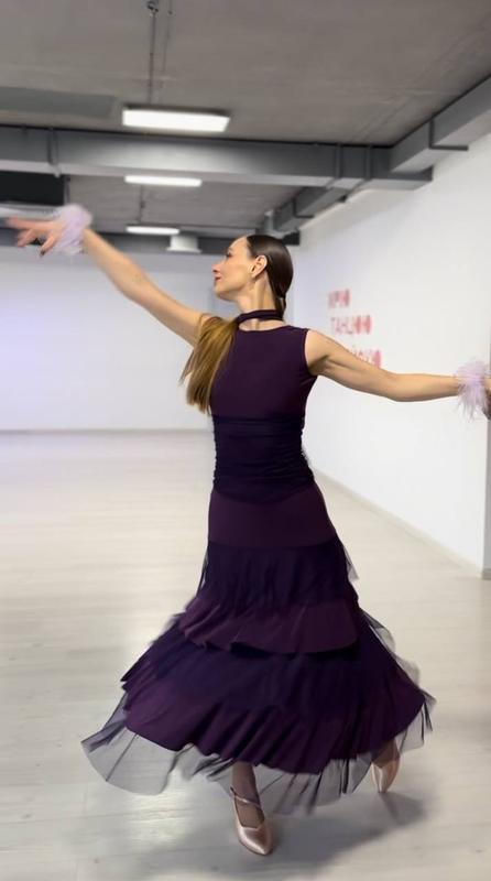 Сукня для бальних танців (стандарт) від FD, в оригінальному фіолетовому кольорі. Має відкриту спину та дуже красиво розкручується в повороті. Без дефектів, одягалася лише двічі. Ціна нової 4000 грн. Ідеально сяде на XS-S. Розмір виробника 44, по розмірній сітці йде на параметри: Ріст - 164 см., груди - 88, талія - 68, стегна - 94. Тканина трикотаж маслоу.