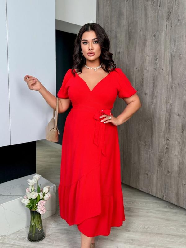 Новинка!💥 Модель сукня Арт.867 ◽️Ткань:Американский креп-жатка ◽️Размеры:50-52;54-56 ◽️Цвета:черный, красный, зеленый,электрик, голубой. Платье на запах, с привлекательным декольте, с высокой оборкой по низу, для торжественного события и не только. ❗️В наличии и количестве❗️ Виміри на арт.867 50-52 54-56 ОГ 105-112 114-120 ОТ 88-92 96-100 **********-128 Довж.вир. по спинке 140 140