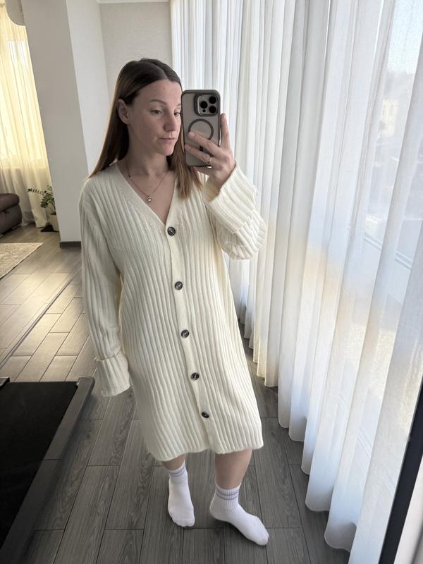 Стильное платье в рубчик кремовое
