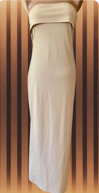 Платье в рубчик от Prettylittlething Цвет - бежевый Платье без застежки, без разреза Размер S Замеры: ПОГ - 33см ПОБ - 42см ПОниз - 38см Общая длина - 111см Длина отворота (на бюсте) - 11см Замеры в спокойном состоянии Тканина тягнеться Состав: 95% полиэстер, 5% эластан Нова