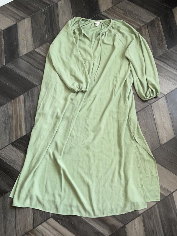 Длинное платье с завязками и разрезами в юбке с обеих сторон. Классные широкие рукава с резинками на манжетах Одето на рост 172 см