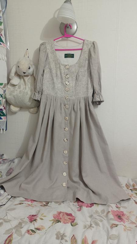 Сукня нереально прекрасна. Я сам коллекционер австрийского наряда, так что в подобных суклях знаюсь и обожают, этнический стиль или Бохо, уксуса круговую складочку, обильные рукава, плотный лен и костные пуговицы, цельная органика. Платье тяжёлое, гора дорогой ткани. Верхняя часть в виде гобелен, показала фактуру на фото. Платье в состоянии нового, уверена, что ткань никогда не гладилась, аж хрустит. Подмышками нашивки, чтобы не портить платье и лишний раз не стирать.Абы мой размер - осталась бы у меня. Так что кому-то повезло) Цены на винтажные этнические подобные платья в международных аукционах уходят в среднем 500 у себя, ведь они шьются безупречно, из лучшей ткани, с лучшей фурнитурой и в большинстве вручную и индивидуально. Еще это платье прекрасно тем, что нет явной символики, можно надевать и носить, и не будет впечатления, что то оновберфест) актуально советовать, очень редко попадает в руки такая сказочная красота. Размер - 42, примерно L. Плечи - 37, подмышками - 50 и еще вытачки, талия - 42, длина - 130, рукав - 43.