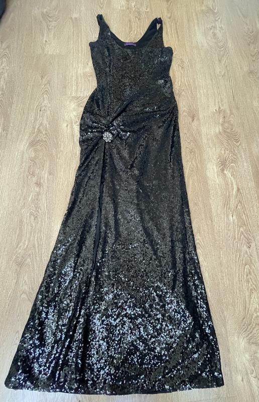 Сукня довга, чорна з паєтками, в гарному стані,має на правій нозі розріз, дуже гарно виглядає Розмір S/M 36-44, 38-46