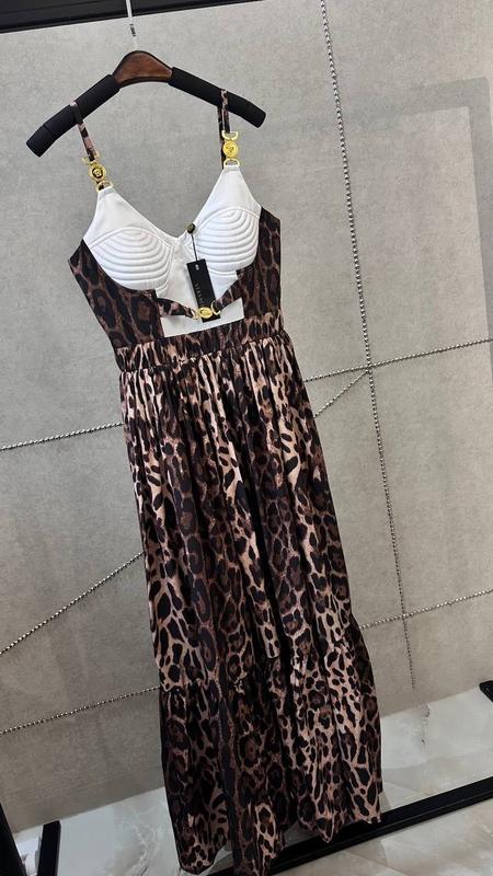 Платье длинный леопард из декольте шоколад