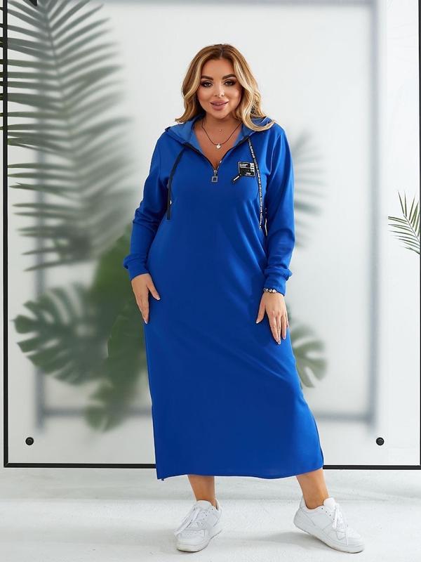 Платье поло спортивного стиля с капюшоном Код #140 Ткань: креп дайвинг Размеры: 50-52, 54-56, 58-60, 62-64 Цвета: черный, красный, электрик, бутилка Платье свободного кроя с длинным рукавом. Декольте на молнии. На груди нашивка. Внизу по бокам разрезы. Есть два кармана. Ткань легкая, очень хорошо тянется. Капюшон с декоративной лентой. Лента может отличаться . Тканина тягнеться до +15см Замеры: 50-52р. Ог 114, От 112, Ос 116, Длина 125, Рукав 61 54-56р. Ог 122, От 120, Ос 124, Длина 126, Рукав 62 58-60р. Ог 130, От 128, Ос 132, Длина 128, Рукав 63 62-64р. Ог 138, От 136, Ос 140, Длина 129, Рукав 63 . Параметры модели на фото Ог 110, От 83, Ос 110, Рост 166 Размер 50-52
