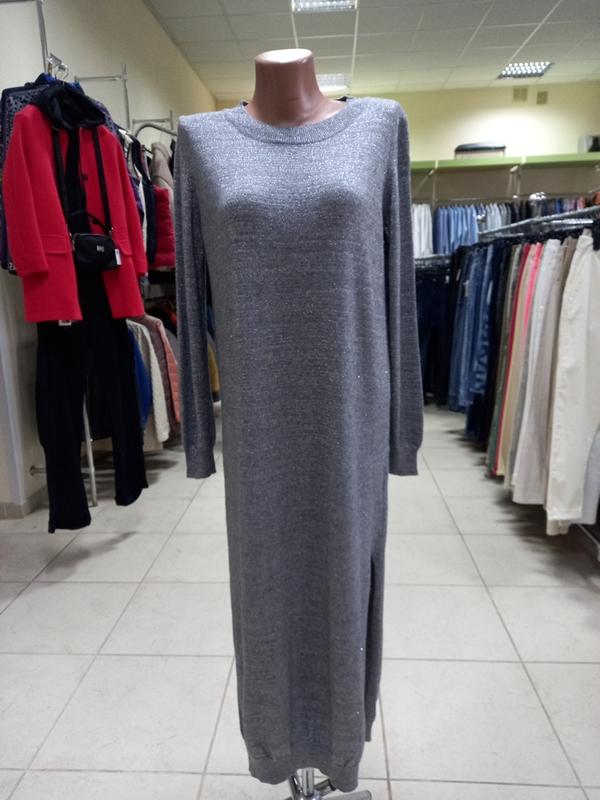 Платье серого цвета с люриксом по бокам разрезы р.S-M