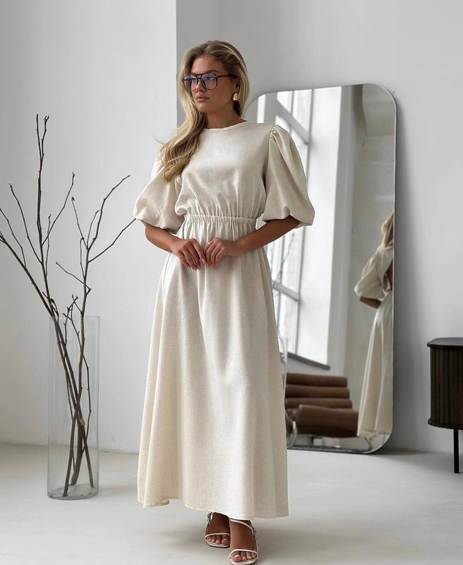 New 💝 Сукня 💎Мод sb 497 ⚜️размер 42-46 (one size) ⚜️Тканина льон ⚜️Цвета: розовый, светлый беж 🏷️ Цена 919грн Длина 134 см Длина рукава 44 см ОГ 86-93 см ОТ 65-75 см (на талии резинка)