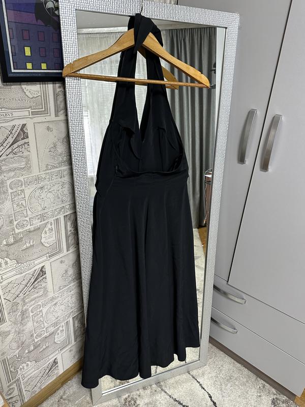 Длина 133 см, полу объем груди 41 см, полу объем талии 34,5 см. Сбоку замок. Плечи голые. На последнем фото дефек ( две вот такие полоска), при ходьбе незаметные.