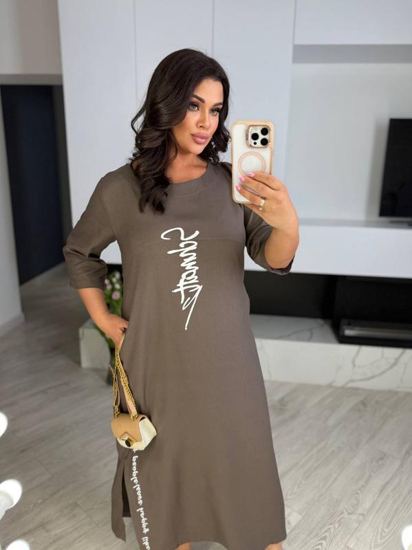 НОВИНКА🔥🔥🔥ХІТ СЕЗОНУ!!! Платье Арт 2502 Тканина льон Цвет черный, лайм, джинс, шоколад Размер 48-50,52-54,56-58,60-62 Цена 875 грн Платье свободного кроя, рукава 3/4 с патиком на пуговице, с карманами. Внизу по бокам разрезы, с качественным накатом спереди.