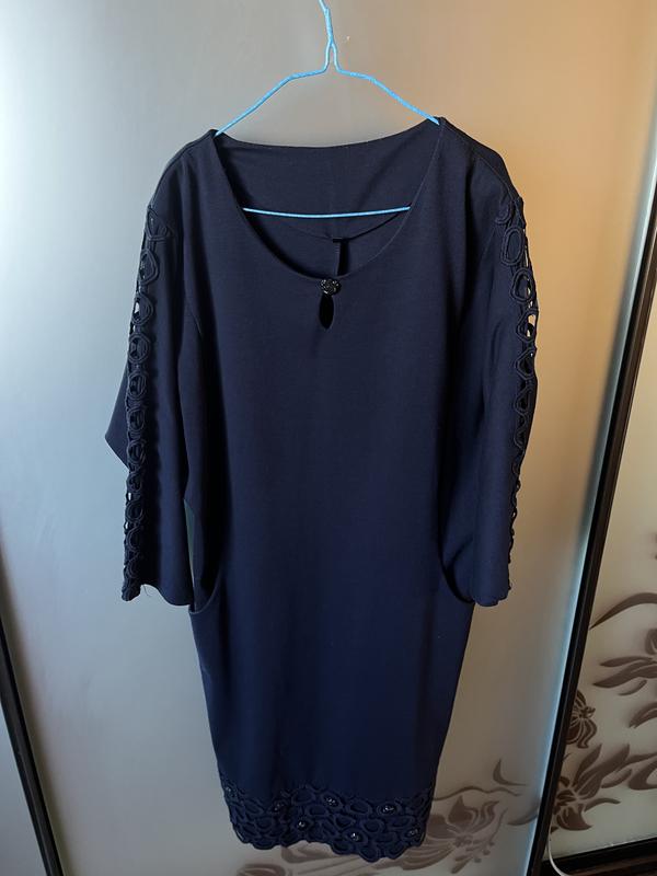 платье темно синее в красивом состоянии и приятном материале Размер 52-54 Плечи: 43см Полуобхват под рукавами: 58см Длина по спинке: 97см