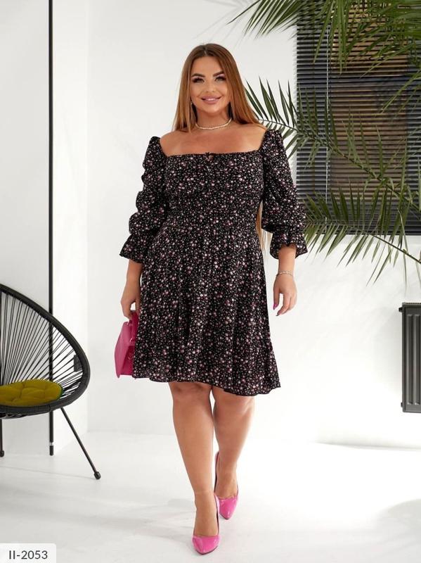 Сукня II-2035 094 Размиры: 50-54 Цина 650 грн. Грациозный крой с акцентом на талию: сборка красиво подчеркивает фигуру, а пышные рукава-воланы добавляют нежности. Романтичная завязка на декольте деликатная деталь, которая добавляет шарма. Идеальная длина и свобода движения то, что надо для прогулок, свиданий и отдыха.