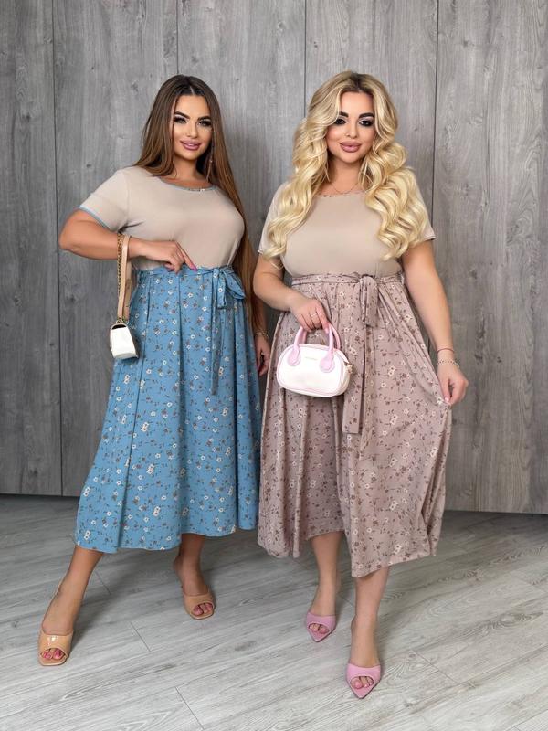 Модель 8887 Весеннее летнее платье Вверх платье турецкий цвет, юбка принтованный супер софт Размеры 1 (50-54), 2(56-60) Цвета бежевый, оливка, голубой Цена 1100грн