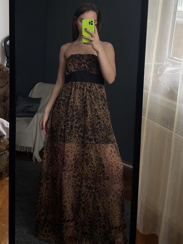 Длинное платье, леопардовая сетка с подкладкой, качественная фурнитура