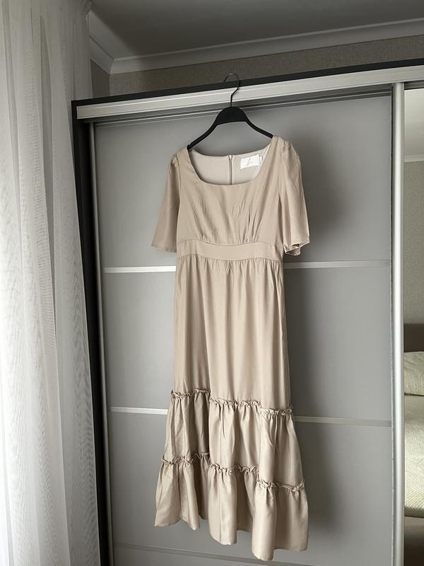 Очень красивое весенне-летнее молочное платье от американского бренда, с подкладом, тканная плотная не просвечивает, цвет очень красивое и нежное, платье в новом состоянии, не одевала ни разу,размер ххс по наборке, но будет на хс и с. Замеры: Длина 113 см Рукав 29 см Плечи 32 см Пояс 36 см