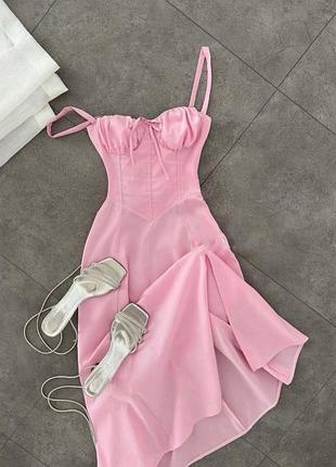 Сукня 🔘Мод 1063 🔘Розміри - 42-44, 46-48 🔘Кольори - білий, рожевий 🔘Тканина - софт Гарна сукня - сарафан зі шнурівкою та імітацією корсету, на усі випадки літніх днів. Збірка на грудях додає обʼєму та гарно підкреслює. Невеликий грайливий розріз на ніжці. Від талії йде вільне пишненьке. Тканина приємна до тіла, не просвічується.