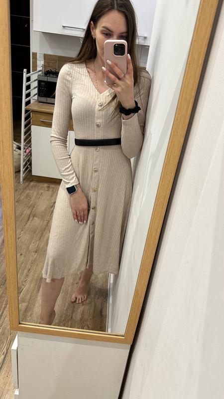 В наличии красивое платье, бежевый цвет) приятное к телу 😌