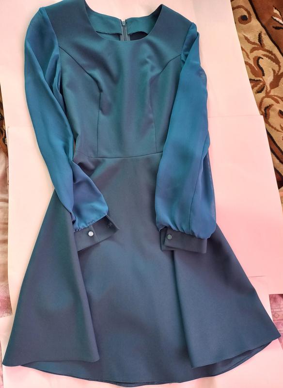 шить на 1 сентября. одевала 3 раза. замеры: ОТ 31,ОГ-36, длина 83, длина рукава 56 цвет тяжело сказать какой, поэтому велюбирюзовый