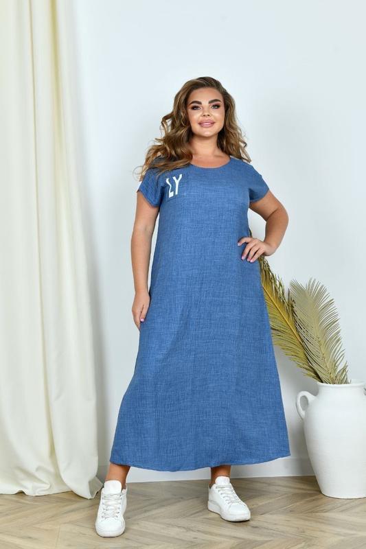 Сукня №Р5222-1221 Длинное платье с короткими рукавами. Сезон: весна/лето Тканина: льон-жатка При выборе размера обязательно ориентируйтесь на замеры готового изделия. Замеры готового изделия: 48-50 ОГ 112, ОБ 118, длина - 132 см 52-54 ОГ 118, ОБ 124, длина - 132 см 56-58 ОГ 132, ОБ 138, длина - 134 см Размеры: 48-50, 52-54, 56-58 Цвет: джинс, черный, оливка
