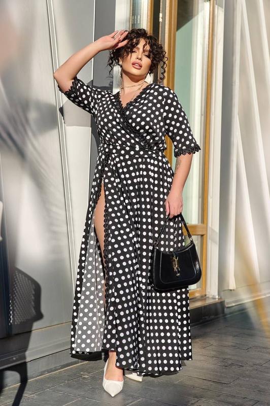 ⬆️Сукня Модель: 7546❤️59 Фото и видео реал Размер: 50-52, 54-56, 58-60 Ткань: софт с кружевом Цвет: красный, черный, электрик, горох Платье в стиле вечернего или коктейльного наряда с элементами будуарного шика. Оно напоминает элегантный халат на запах, но выполнено торжественном варианте. Такой фасон универсальный – его можно носить как вечерний наряд с элегантными туфлями, или создать более расслабленный образ, дополнив стильной обувью и минималистичными аксессуарами Замеры ▪️50-52 ОГ: 110-115 см ОТ: 100 см Длина изделия: 138 см Длина рукава: 34 см ▪️54-56 ОГ: 118-123 см ОТ: 108 см Длина изделия: 138 см Длина рукава: 34 см ▪️58-60 ОГ: 126-134 см ОТ: 116 см Длина изделия: 138 см Длина рукава: 34 см
